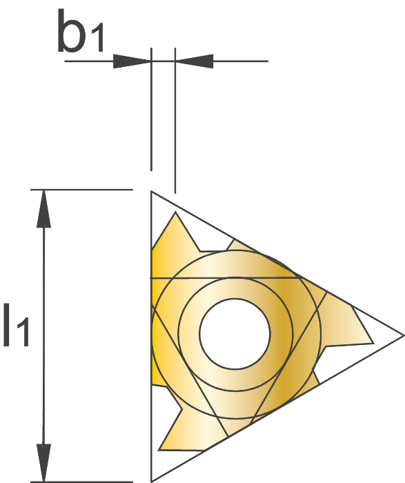 Deelprofiel wisselplaat voor het snijden van diverse uitwendige Engelse schroefdraden (55°).