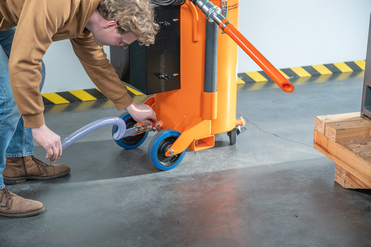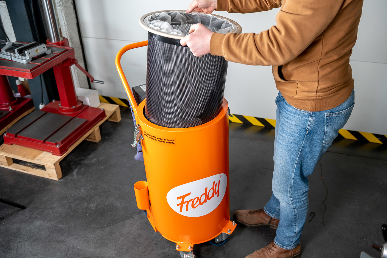 De Freddy Micro koelolie- en spanenzuiger is speciaal ontworpen voor het opzuigen van koeling en spanen.