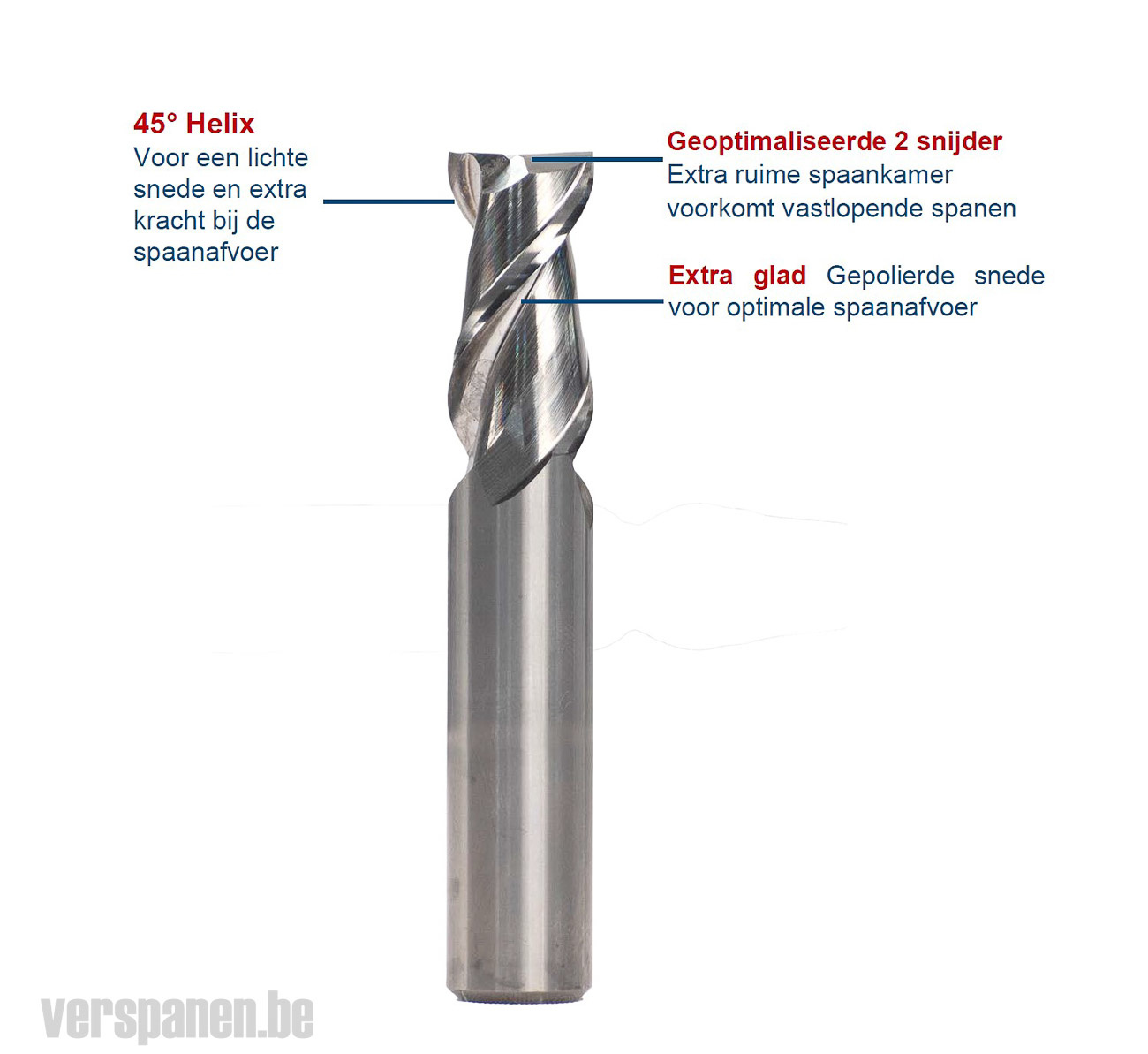 ● Betere spaanafvoer en snijkracht door gepolierde snedes