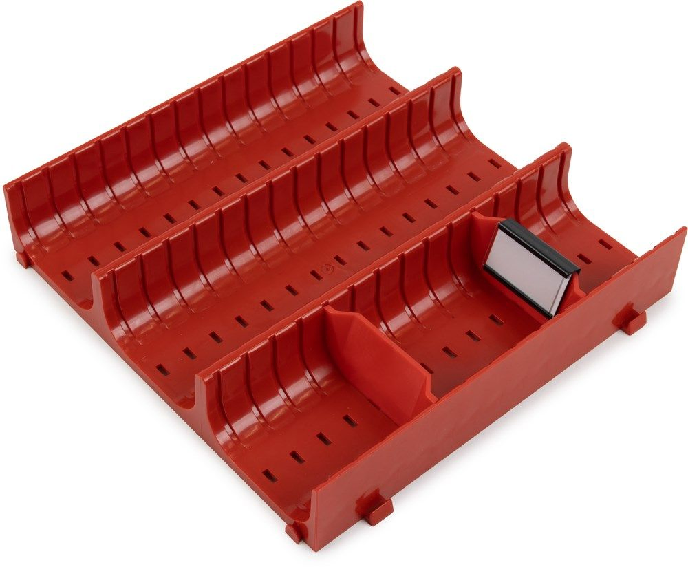 Universele ladeverdeler van slagvaste ABS-kunststof met vaste afmeting (150x150mm) 3 en 4 rijen. Ideaal voor het snel en eenvoudig inrichten van uw werkbanklade.