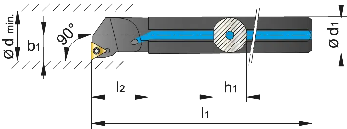 Dit is een rechtse beitel, die gebruik maakt van TCMT/TCGX 11 wisselplaten.