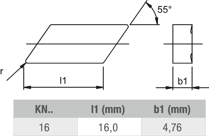 Phantom wisselplaat type KNUX 1604, uitermate geschikt voor het bewerken van (non-ferro) staalsoorten zoals RVS, (gehard) staal, gietijzer.
